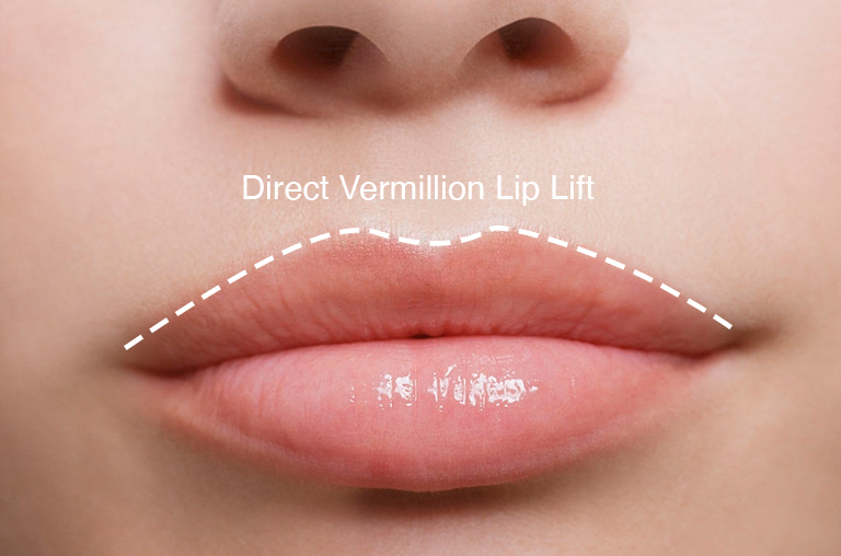 Nâng môi trực tiếp, đôi khi được gọi là nâng môi theo chiều dọc, tạo ra một đường viền môi rõ ràng hơn.