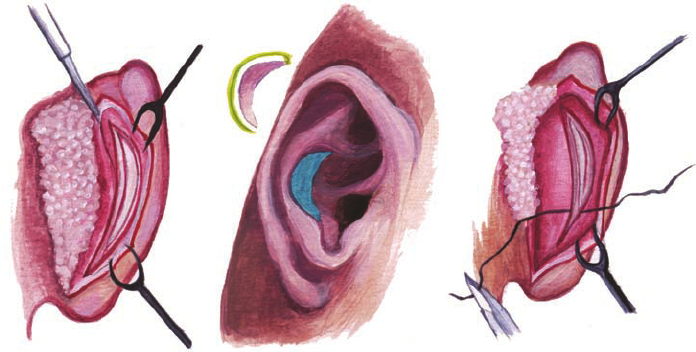 Hình minh hoạ kỹ thuật lấy sụn ở tai